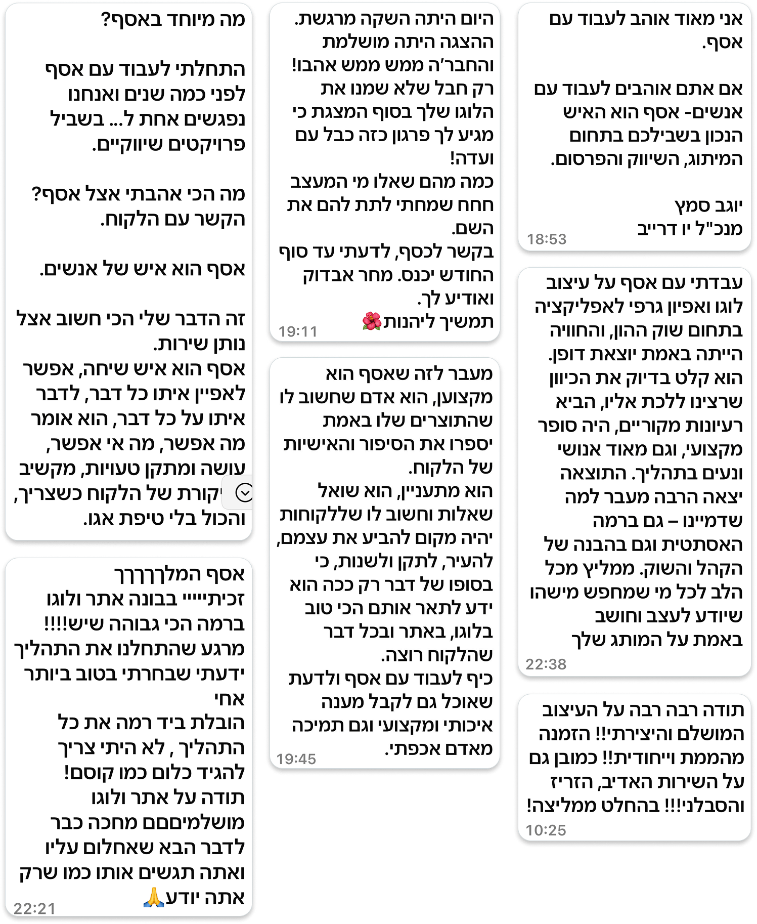 אם אתם מחפשים מישהו שמביא לב, דיוק וחשיבה וגם קפה טוב על הדרך, אני כאן בשבילכם. בואו נרים את העסק שלכם לגבהים חדשים.